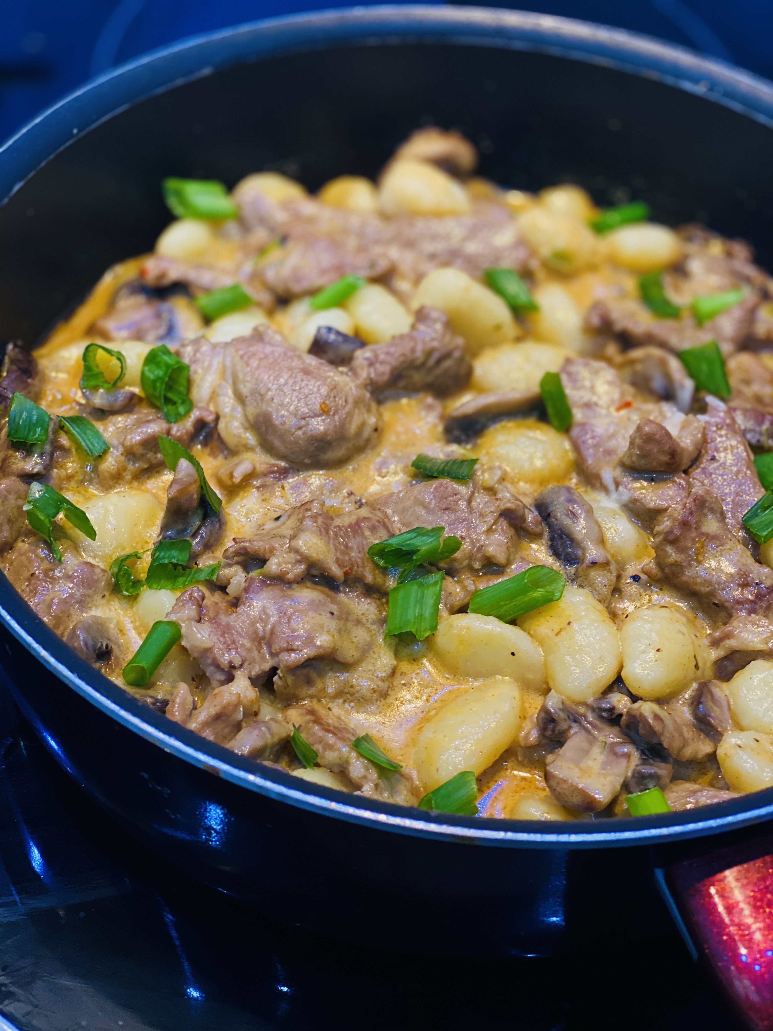 - Garnish with some spring onions/ extra cheese and allow to rest covered off the heat for some minutes before eating. This is to allow the gnocchi to soak up the flavours from the sauce completely.